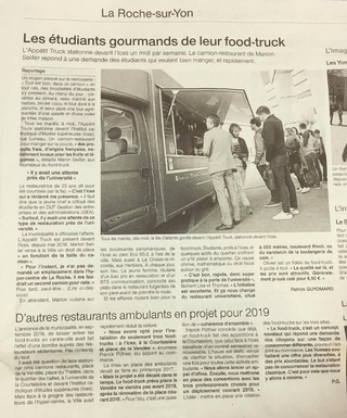 Petit retour sur la création de l'APPETIT TRUCK avec cette vidéo qui explique la participation des étudiants de l'IUT La Roche sur Yon pour leur projet d'étude Créa IUT. Je remercie l'équipe étudiante de GEA 2015-2016 pour m'avoir accompagné dans mon projet, et les félicite pour leur victoire lors du concours Créa IUT qui me permet de présenter l'APPETIT TRUCK durant le salon des entrepreneurs de PARIS le Jeudi 2 Février prochain.